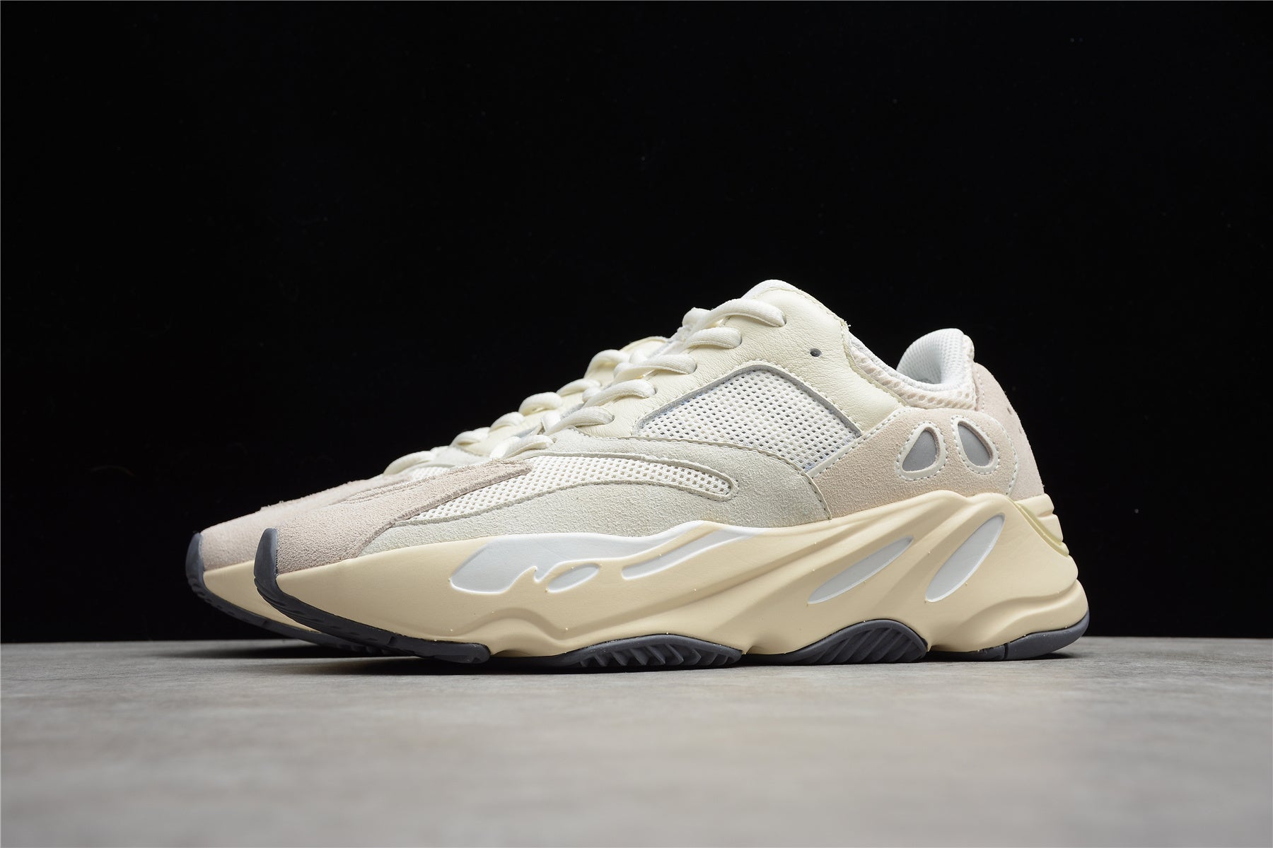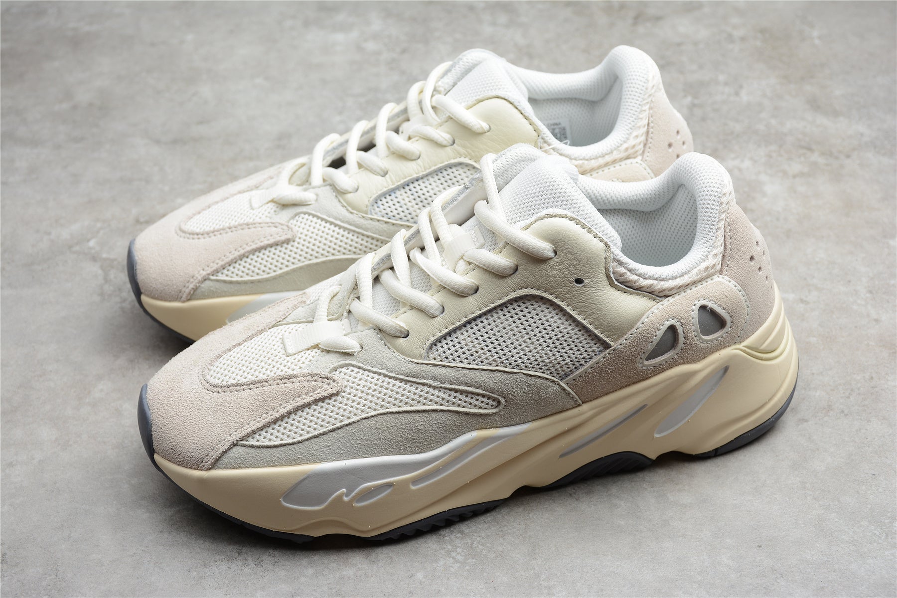 💎 Built as a true 1:1 replica, the Yeezy Boost 700 “Analog” features a layered upper made from premium suede, mesh, and leather, dressed in soft white and cream tones for a minimalist yet luxurious aesthetic. The Boost midsole provides superior cushioning and energy return, while the chunky outsole ensures stability and traction — making them as functional as they are stylish.