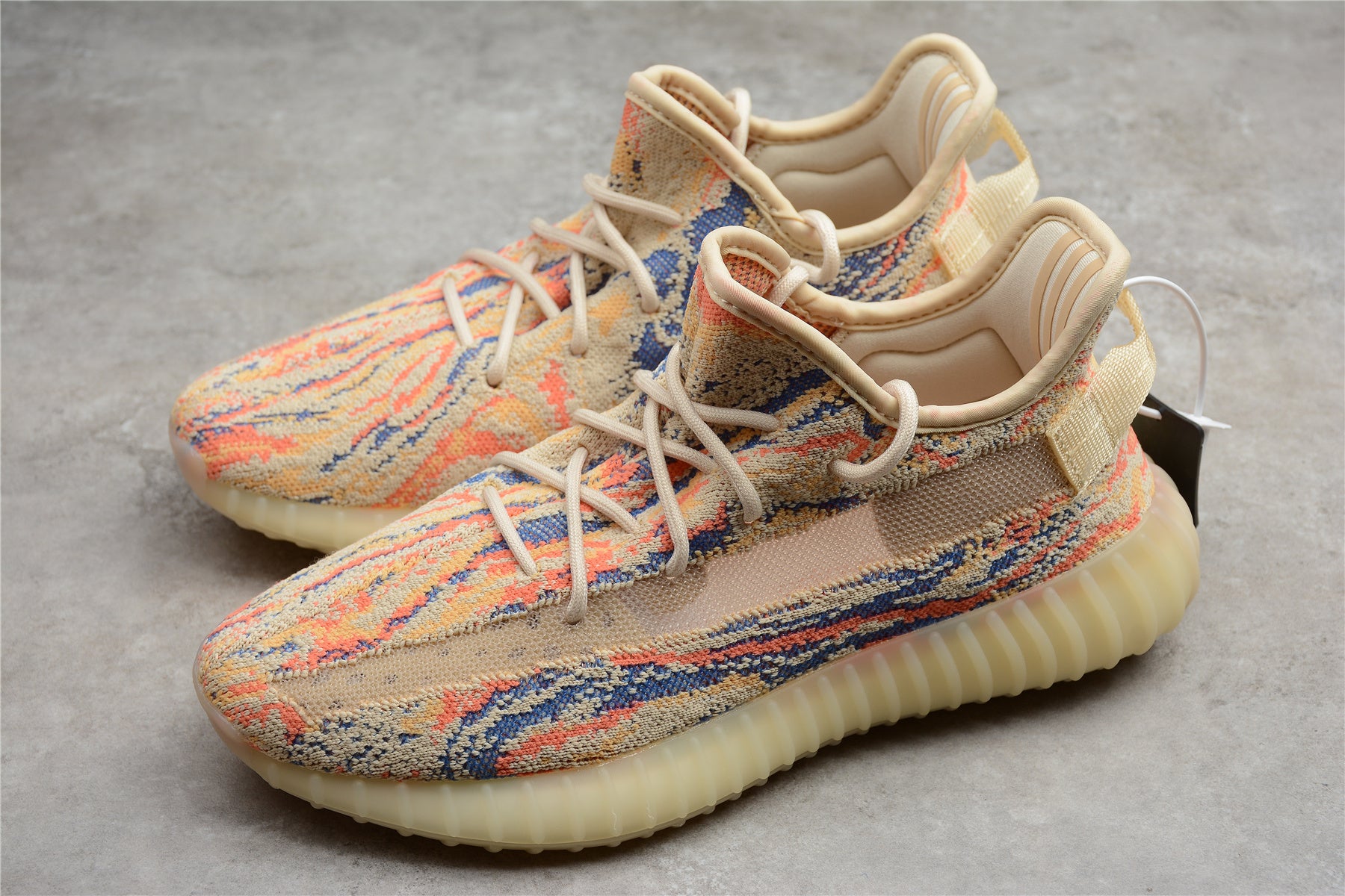 💎 The Yeezy Boost 350 V2 “MX Oat” features a multicolor swirl Primeknit upper blending cream, orange, blue, and yellow tones for a dynamic, eye-catching effect. The translucent side stripe adds a modern touch, while the Boost midsole delivers responsive cushioning and all-day comfort. Built with 1:1 replica precision, every stitch, knit texture, and shape perfectly mirrors the authentic Adidas pair — offering luxury quality at an unbeatable value.